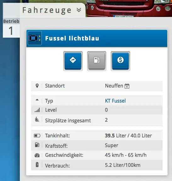 Ich habe eine Frage: Und zwar bin ich jetzt zum neuen Platz in Kempten gefahren. Dort angekommen haben meine Fahrzeuge noch knapp über 30 Liter. Also wollte ich mal das Tanken testen. Allerdings wird das Zapfsäulensymbol nur ausgegraut angezeigt. Ich habe freie Mitarbeiter und eine Tankstelle in der Stadt. Was sind die Vorraussetzungen, dass man überhaupt das Tankfenster aufrufen kann?
