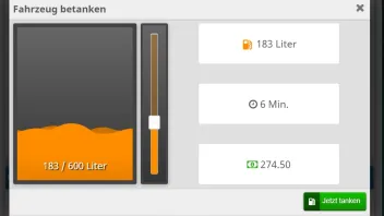 • Die Benutzeroberfläche des Tanken-Dialogs wurde komplett neu erstellt. Man sieht nun auf einen Blick, wie voll der Tank des Fahrzeugs ist, wie viel man tankt, was es kostet und wie lange der Prozess dauert.