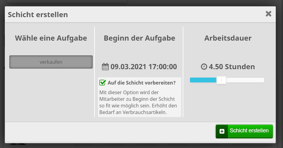 Neues Feature: Die Option zur Vorbereitung auf die Schicht ist nun beim Erstellen einer neuen Schicht abschaltbar