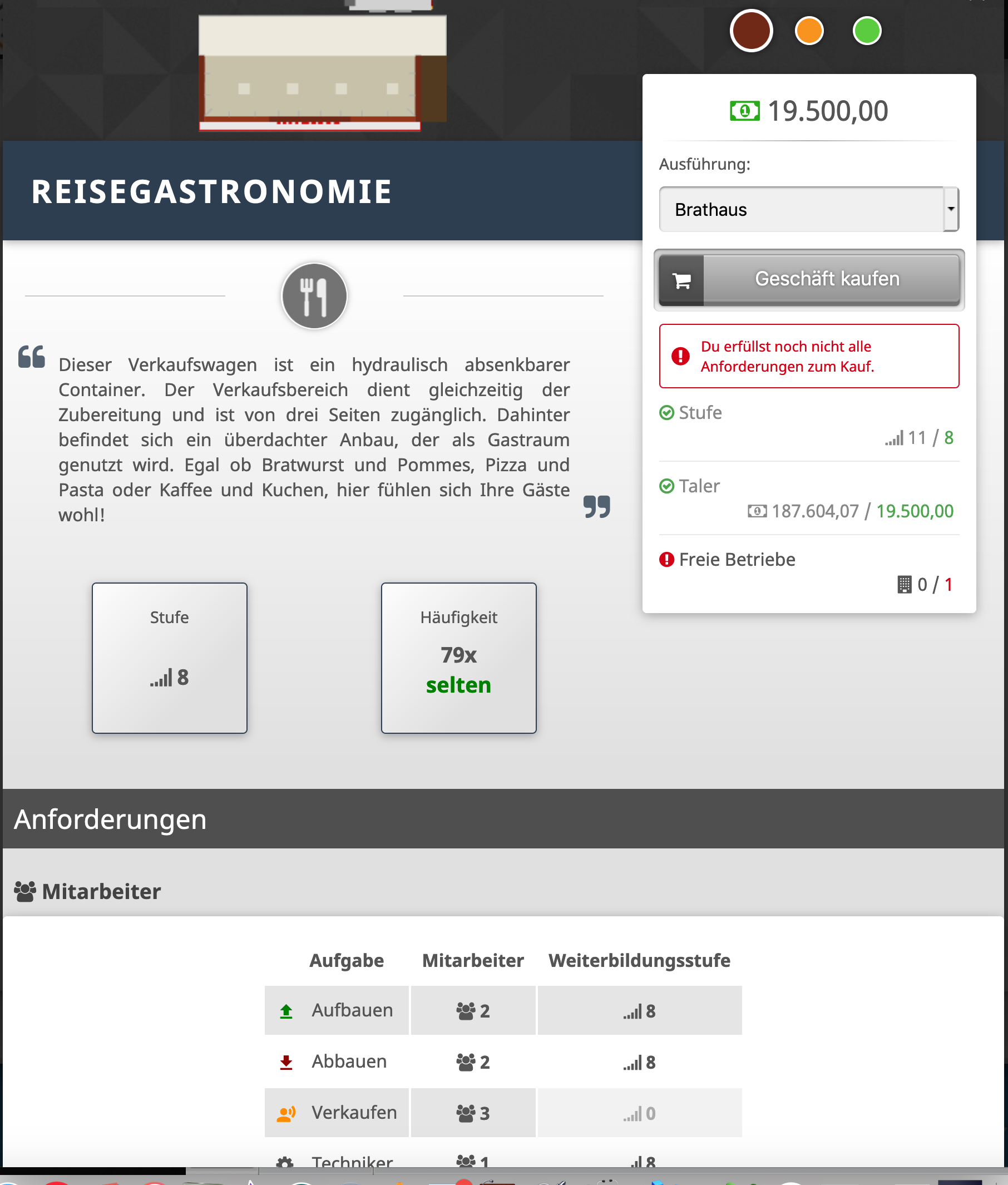 Aber du kaufst Geschäfte mit einem bestimmten Lvl. Wenn du level 8 bist, kannst du alle geschäfte bis Lvl 8 kaufen.
