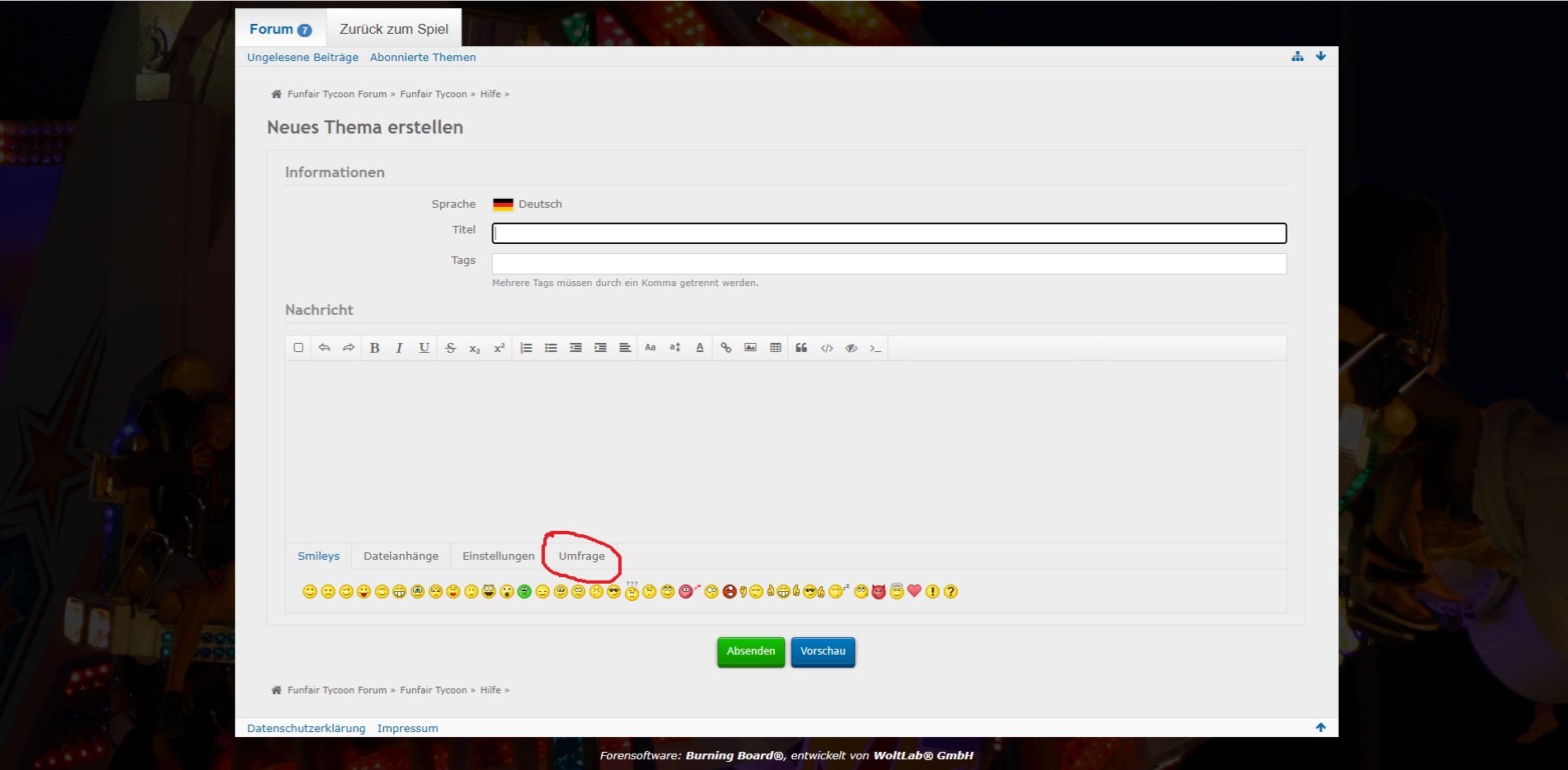 14. April 2021 um 17:08 #1 Hallo Zusammen,ich habe mal gesehen dass einer eine Umfrage im Forum gemacht hat, dort konnte man dann Antworten Auswählen. Meine Frage wäre wie das geht?Lieben Gruß Jakob