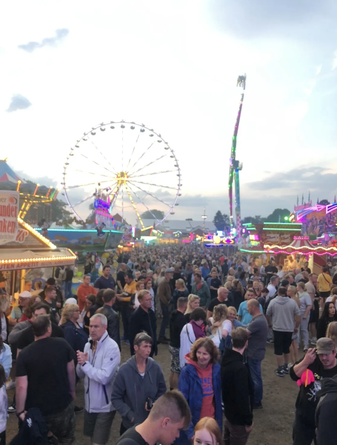 Auf dem Markt dann trotz vorherigem Gewitter, kaum ein durchkommen. Es ging im Schneckentempo. Gut, wir hatten es nicht eilig, da die Fahrgeschäfte am Wochenende eh bis 3 Uhr fahren und unter der Woche bis 2 Uhr.