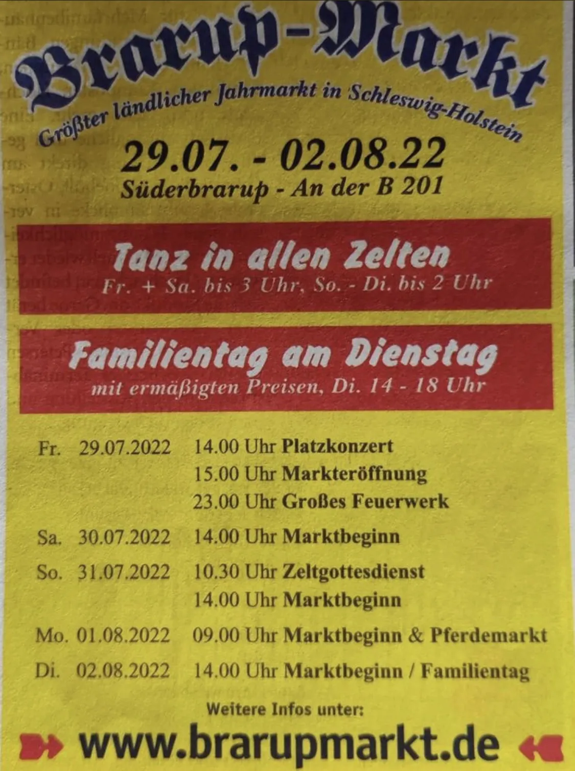 Alles was südlich von Rendsburg / Eckernförde liegt ist selbst dort dieser Markt fast gänzlich unbekannt. Was aber auch daran liegt das so gut wie kaum Werbung außerhalb dieses Gebietes Werbung gemacht wird. Wozu auch, der Platz liegt in dem kleinen Ort Süderbrarup zwischen Schleswig und Flensburg und ist grad mal so groß wie 2 Fußballfelder.