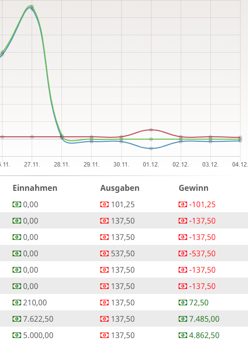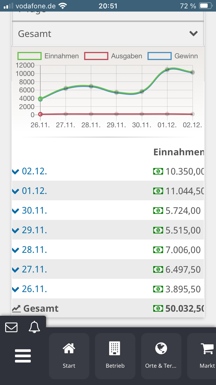 Aktuell stehst du noch auf dem Straßenfest. Dort sind die Einnahmen generell viel geringer als später auf den Festen.
