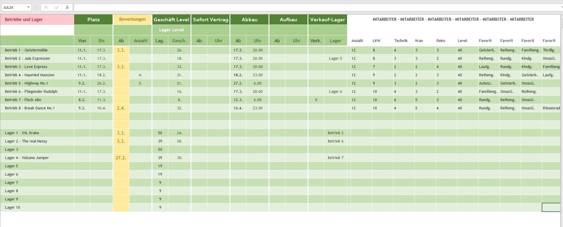 ist halt ne kleine hilfstabelle für die übersichtIch habe 6 Betriebe und brauche keine extra Tabellen. Wenn du für deine 4 Betriebe ein brauchst oder möchtest ist ja auch Ok.