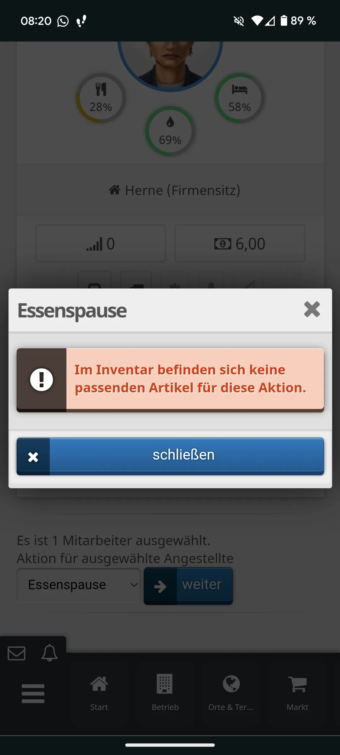 Ich habe gestern Nacht ein neues Unternehmen gegründet und somit auch einen neuen wohnwagen gekauft. Mitarbeiter sind eingestellt, jedoch lässt sich das Inventar nicht auffüllen. Meine Mitarbeiter sind hungrig und mir werden folgende Nachrichten angezeigt. Obwohl ich Einkaufe, wird mir der Wert. Von meinem Guthaben abgezogen.