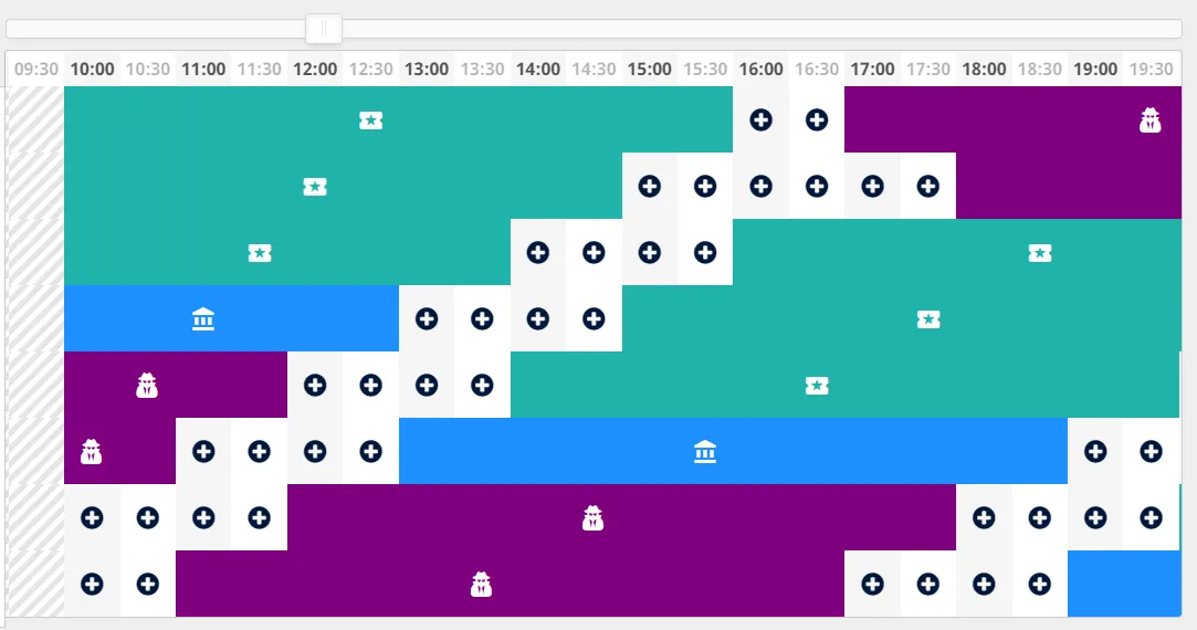 Bei manchen Betrieben bevorzuge ich auch den doppelten Personalstamm, bei anderen wird mit versetzten Schichten gearbeitet. Als Beispiel, so kann der Schichtplan für mein Haunted Mansion aussehen:
