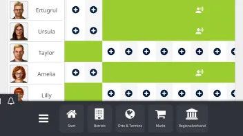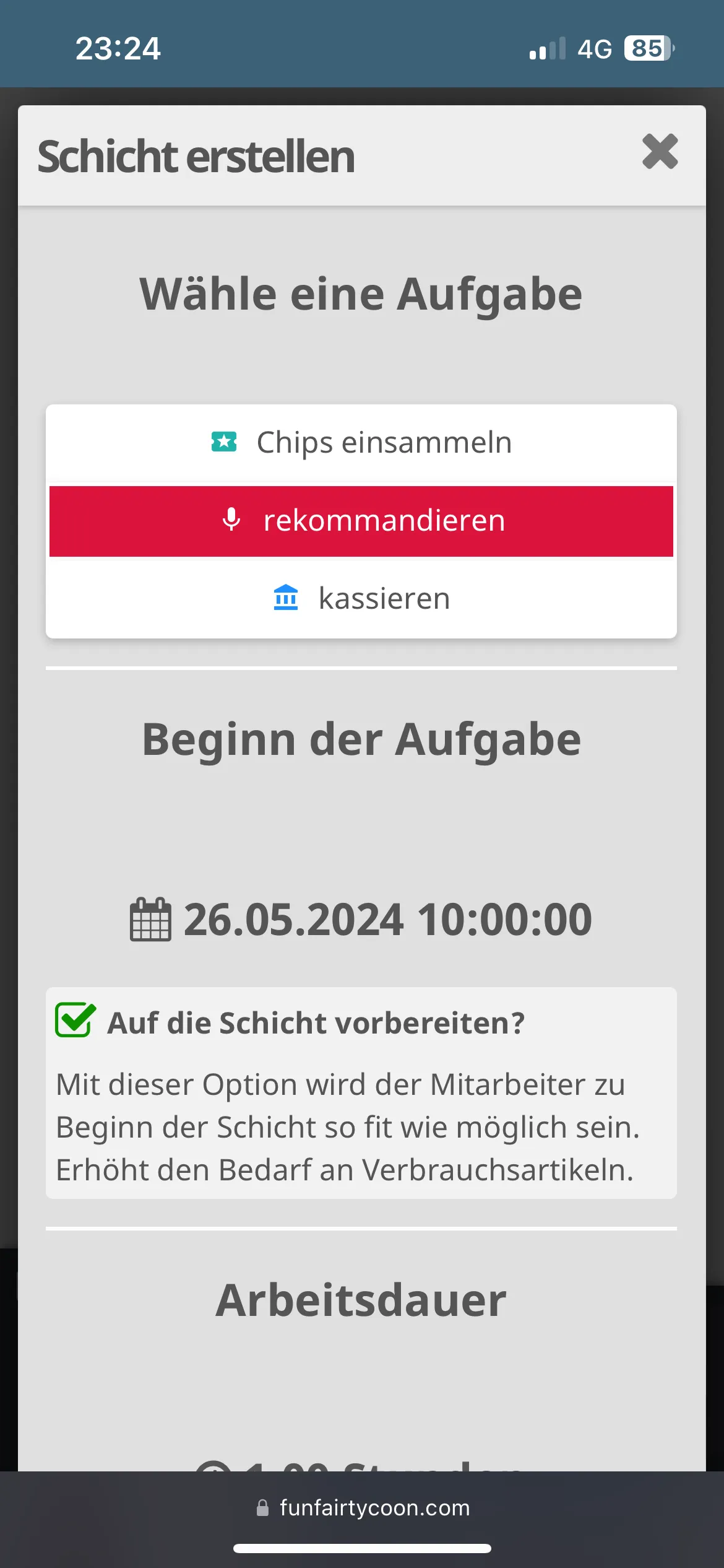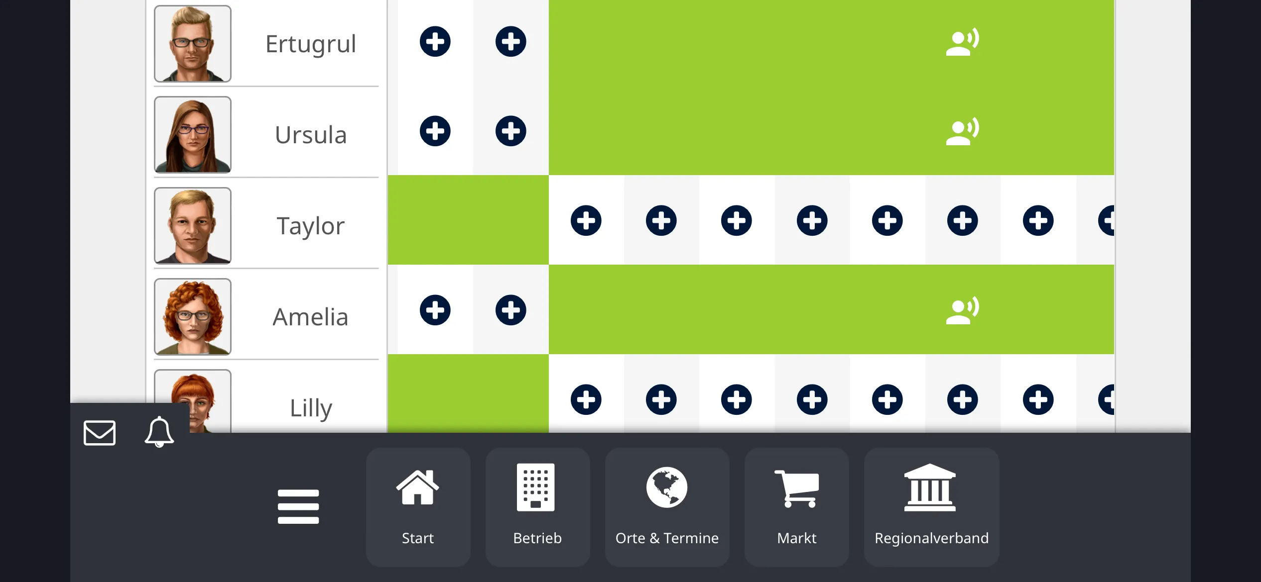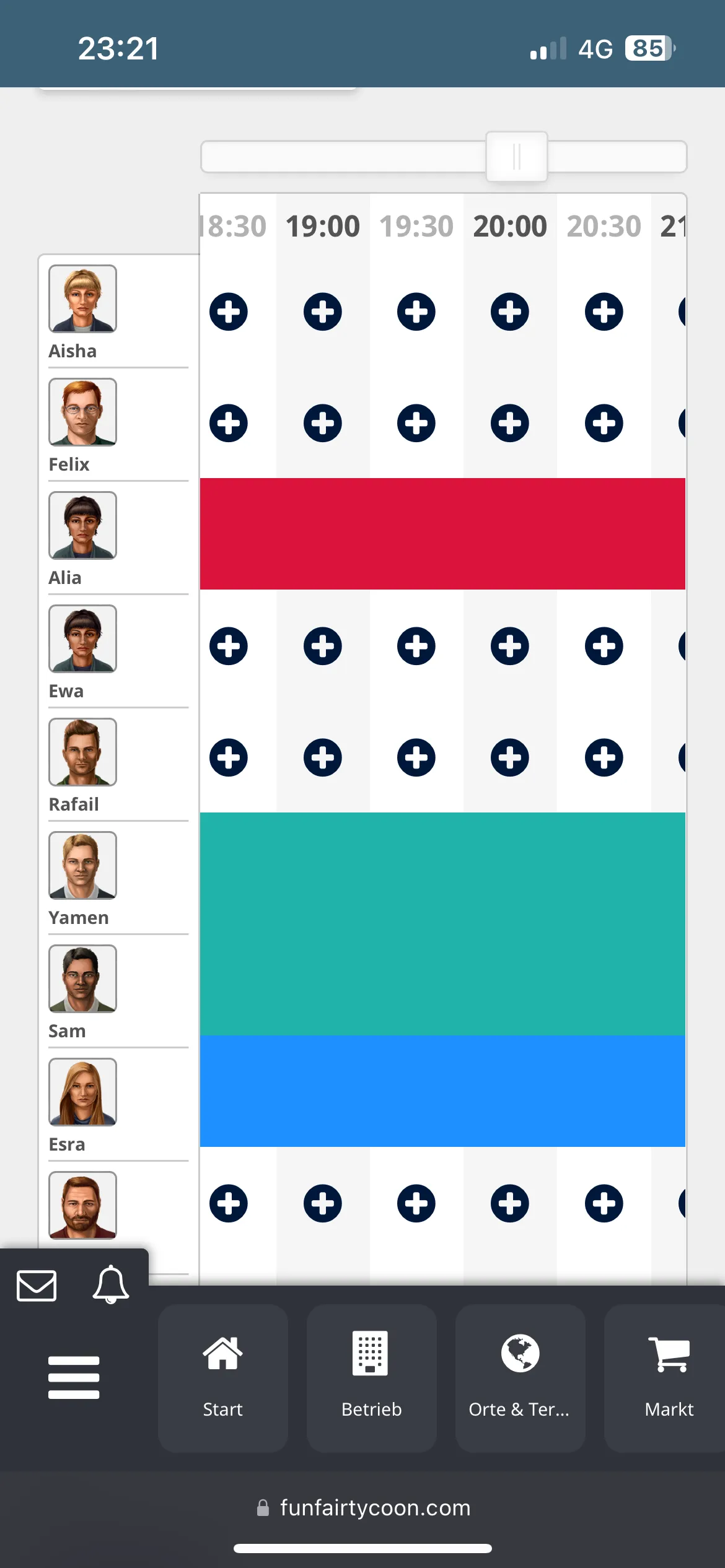 • Jede Aufgabe hat ne eigene Farbe im Schicht Plan , ich zb brauche 2 für Chips einsammeln , einen für kassieren also Karten Verkauf und einen für reko also Durchsage machen
