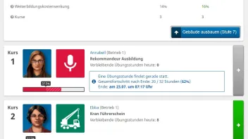 Für jeden Kurs muss eine bestimmte Anzahl an Übungsstunden absolviert werden, damit er erfolgreich abgeschlossen werden kann.