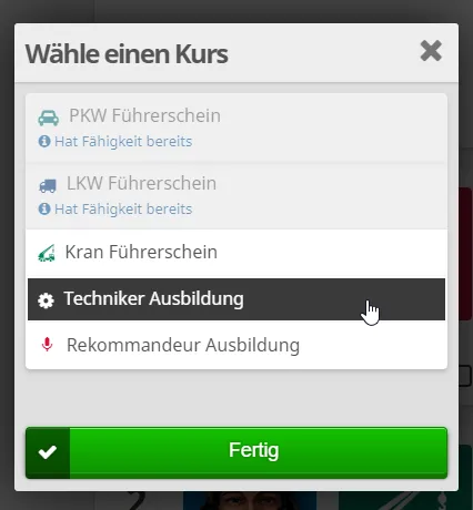 Jeder Mitarbeiter, der eine neue Fähigkeit erlernt, belegt einen Kurs. Um mehreren Mitarbeiter gleichzeitig eine neue Fähigkeit beizubringen, benötigst du mehrere Kurse.