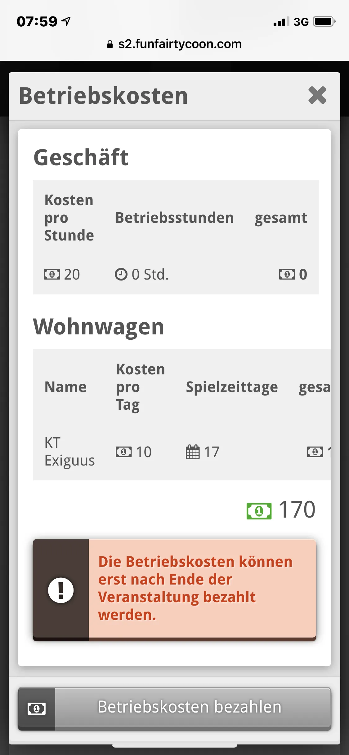Mir ist gerade aufgefallen obwohl ich in Ahaus nicht aufgebaut habe (nur Platz Gebühren bezahlt) ich Betriebskosten für den Wohnwagen bezahlen soll obwohl er gar nicht vor Ort ist.