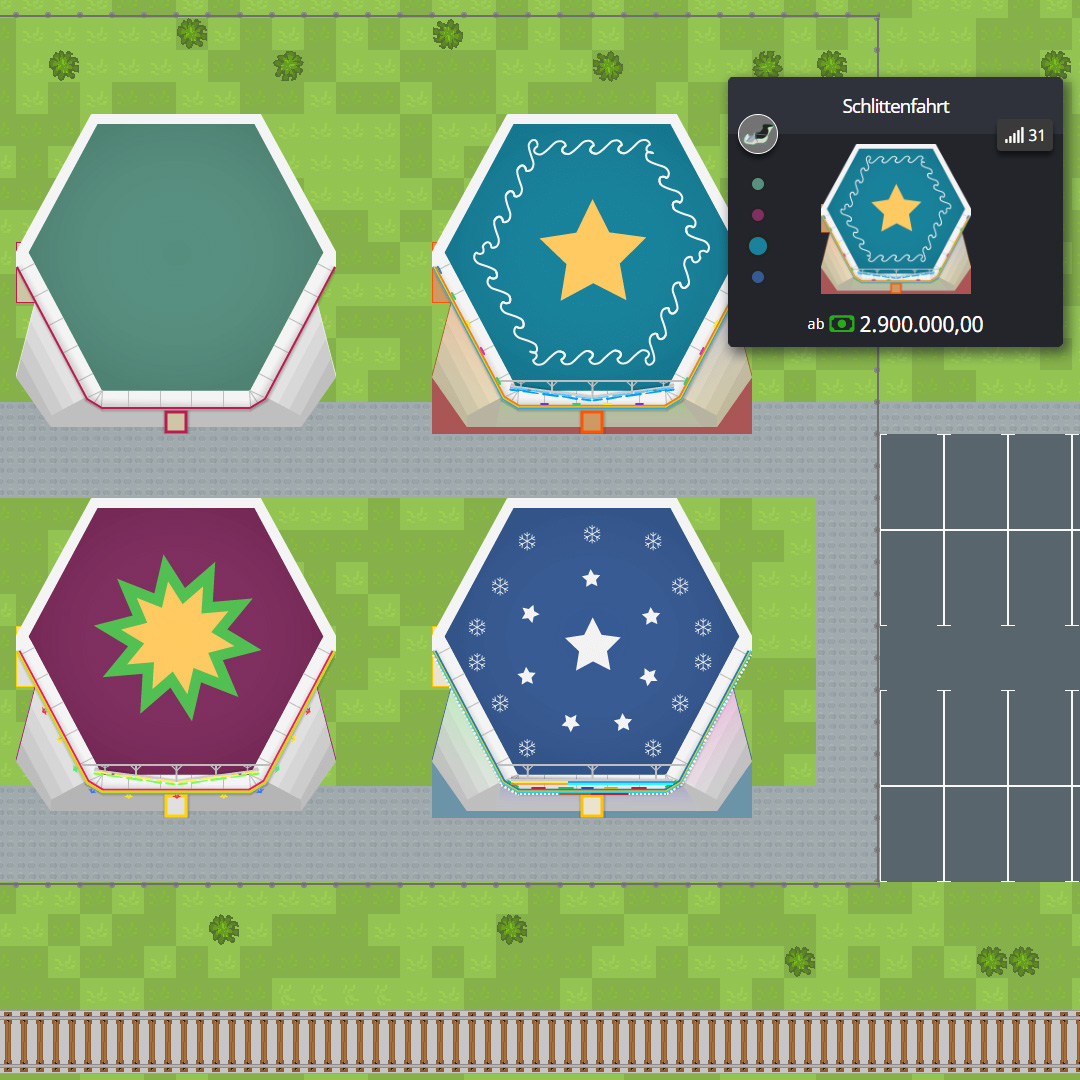 - [neu] Neues Rundfahrgeschäft in Stufe 31: Schlittenfahrt (erhältlich in den Ausführungen: Schlittenfahrt, Disco Star, Südseewellen, Petersburger Schlittenfahrt)