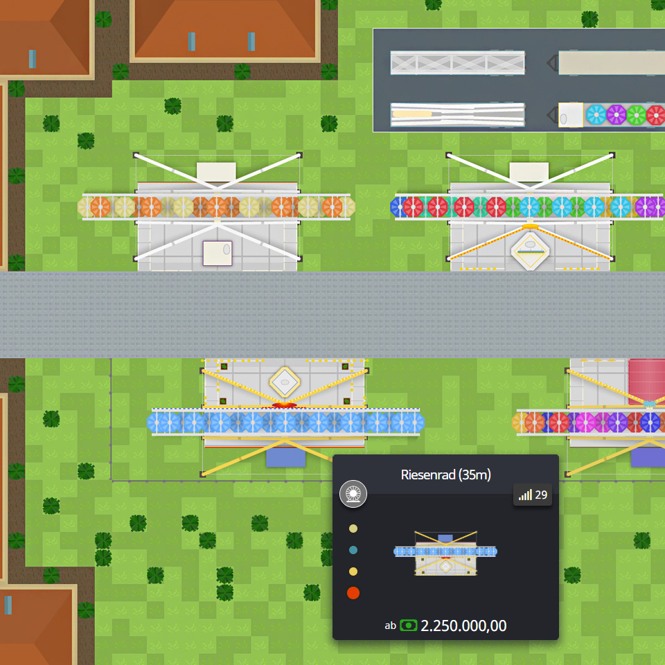 - [neu] Neues Riesenrad in Stufe 29: Riesenrad 35m (erhältlich in 4 Ausführungen, u.a. Golden Wheel, Europa-Rad)