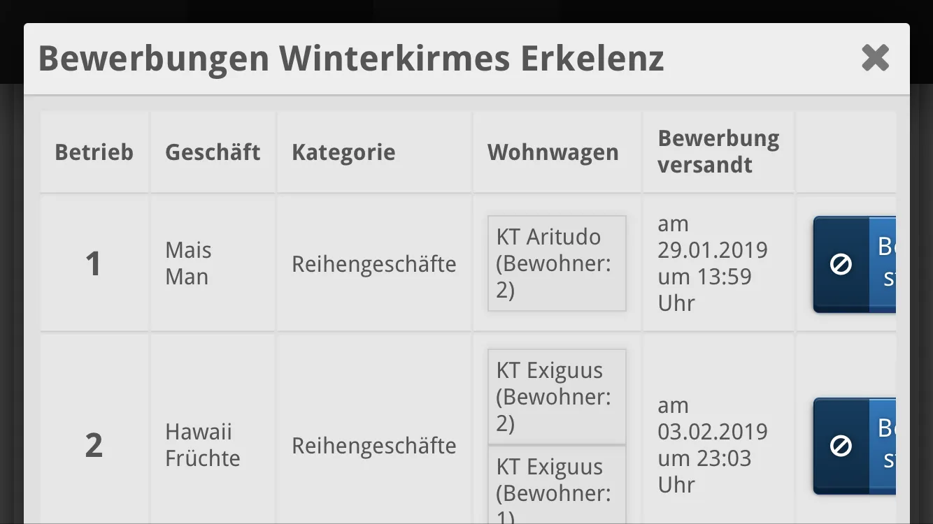 Ein kleines Feedback von mir. Die Anzeige wann Ich eine Bewerbung Versand habe, finde Ich ein wenig überflüssig. Was mir aber fehlt, eine Anzeige was mich der Platz kosten wird. Bei mehreren Beteieben, wäre es eine sehr gute Angabe um den überblick nicht zu verlieren.![]()
