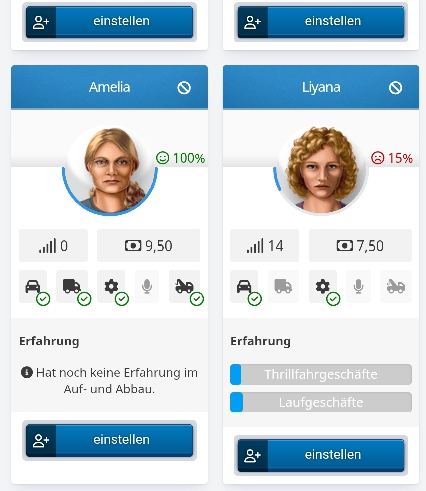 Ich habe schon 4 MA Eingestellt. Einen hatte ich auf 0% und der ist jetzt schon fast 50%. Habe ja Zeit. Das gute ist ja das die nur Geld kosten, wenn die arbeiten. Ich lehne die ganze Zeit schon ab. Aber bis jetzt nur Schrott