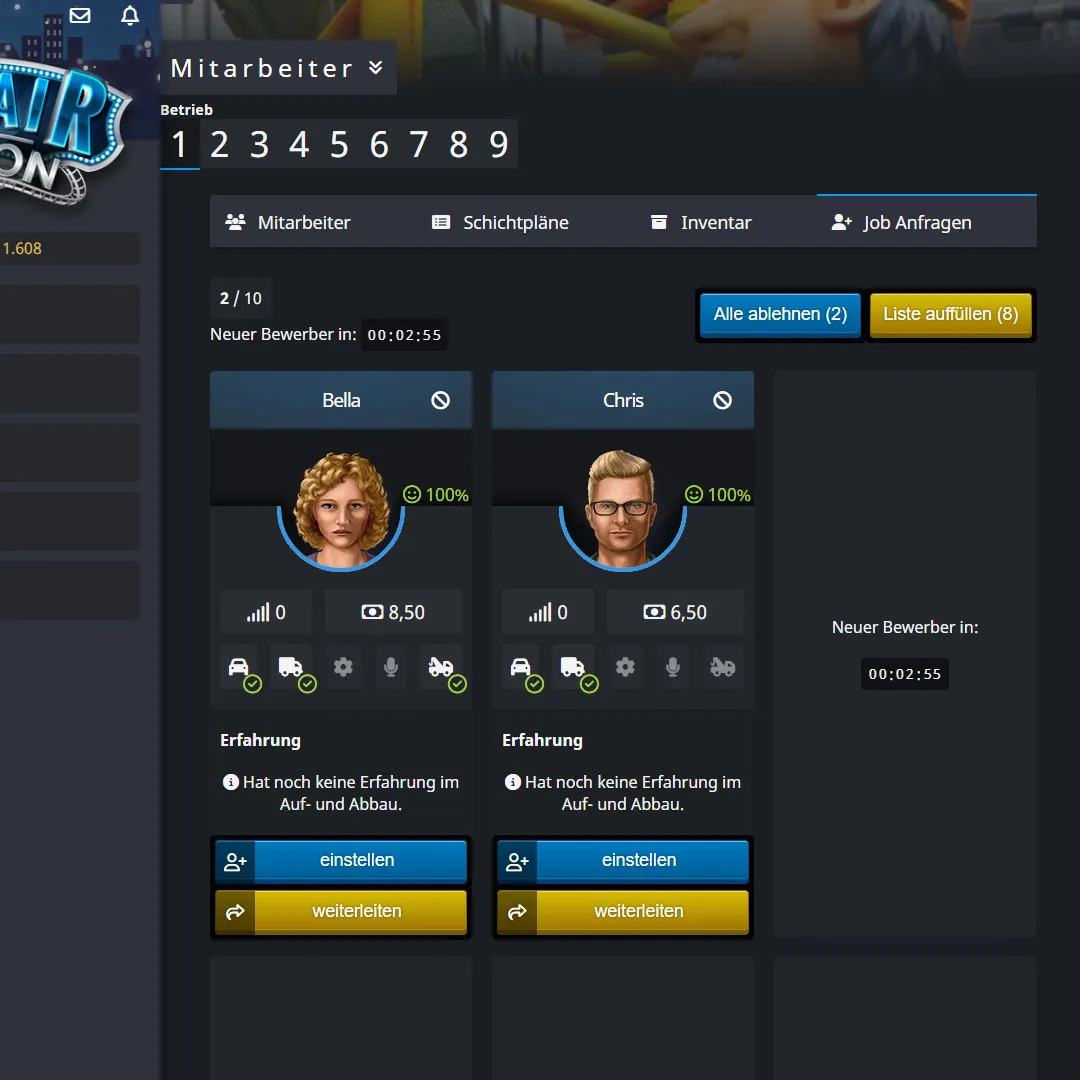Ab sofort könnt ihr bis zu 10 Bewerber pro Betrieb haben (bisher: 9)