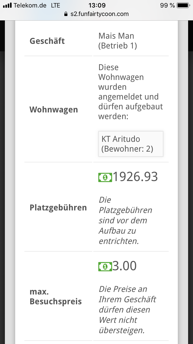 Da die Spielzeit nun angefangen hat müsste ich doch meinen Wohnwagen im Lager verkaufen können denn er ist in keiner Bewerbung mehr enthalten. -