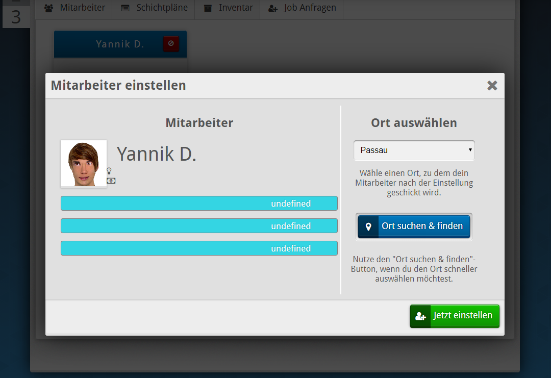 Hab noch ein Fehler entdeckt. Kann bei Betrieb keinen Mitarbeiter auswählen der die Inspektion übernehmen soll obwohl der bereit dazu wäre. Es kommt nur ein Fenster mit einem Auswahlkasten aber kein Mitarbeiter. Dieser Fehler tritt auf dem Handy auf.