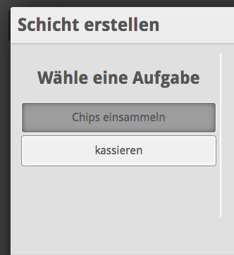 Man könnte entweder 2x den Button "Chips einsammeln" darstellen, oder die Übersicht (wie im oberen Bild) in dem Fenster "Schichten" noch einmal mit anzeigen.