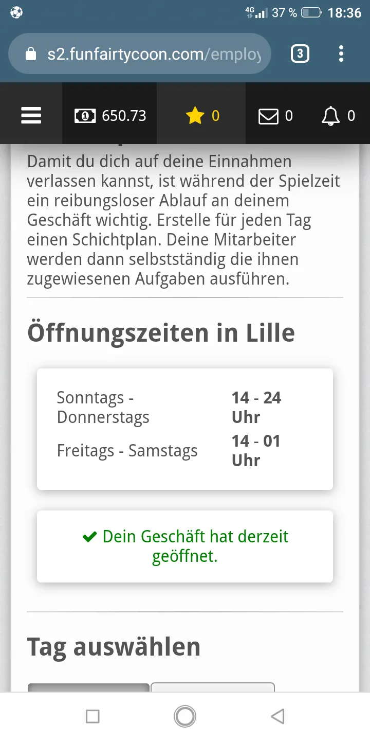 Die Betriebskosten werden dir jeweils stündlich abgebucht, wenn du deine Mitarbeiter in Schichten eingeteilt hast und dein Geschäft dadurch geöffnet ist. Es ist jedoch egal, ob ein Gast dieses besucht oder nicht.