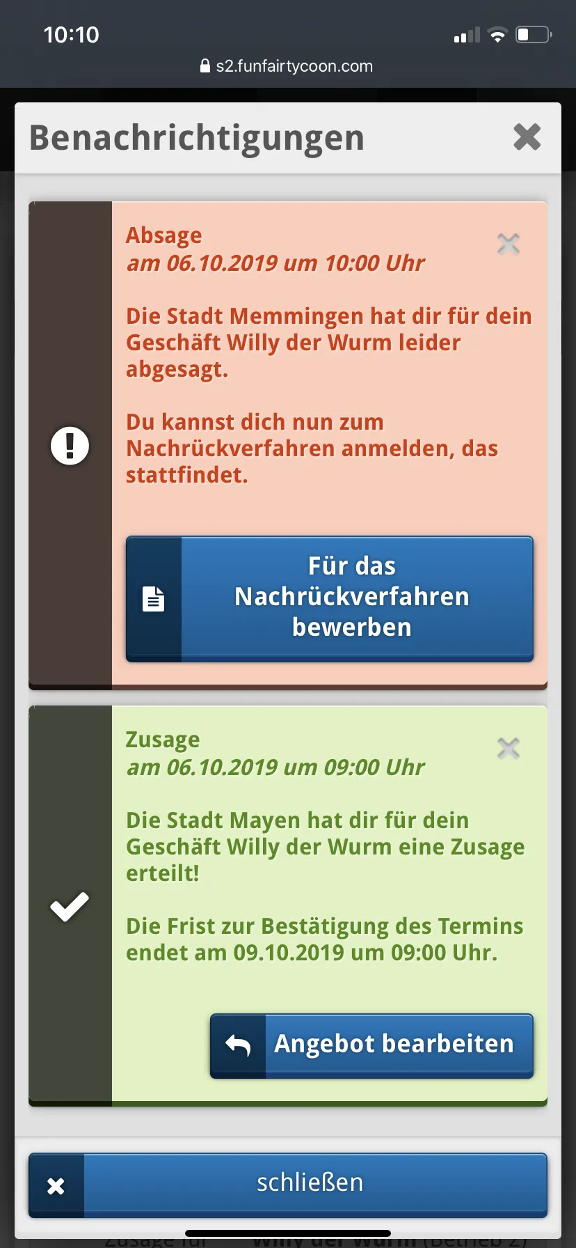 Discovery hat eine Zusage für Mayen, und eine Absage für Memmingen. Bei mir genau umgekehrt