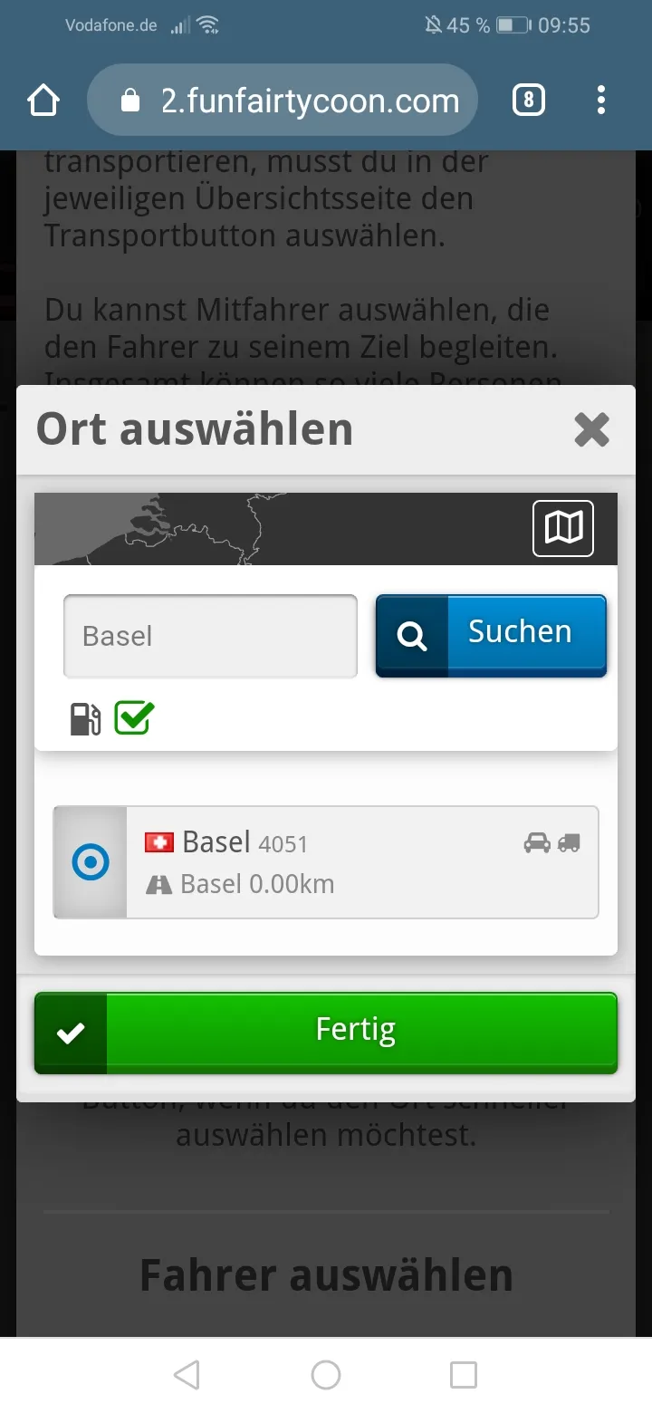 Das war leider nicht möglich, weil ich mit 2 Geschäfte/Fahrzeuge kaum Benzin im Tank hatte.
