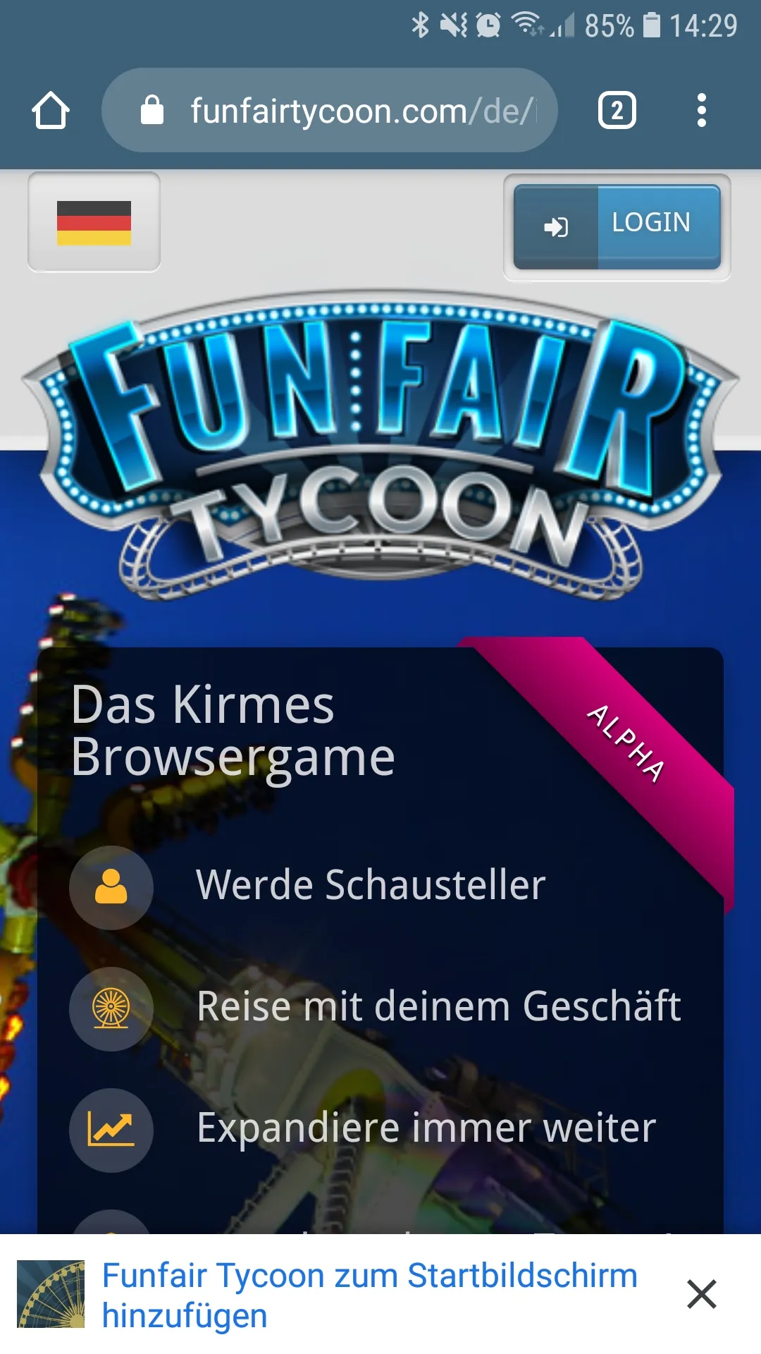 - Wenn ihr Funfairtycoon.com öfters besucht, fragt euch der Browser oft schon von selbst, ob ihr die Web-App installieren möchtet. Das sieht dann z.B. in Chrome so aus:
