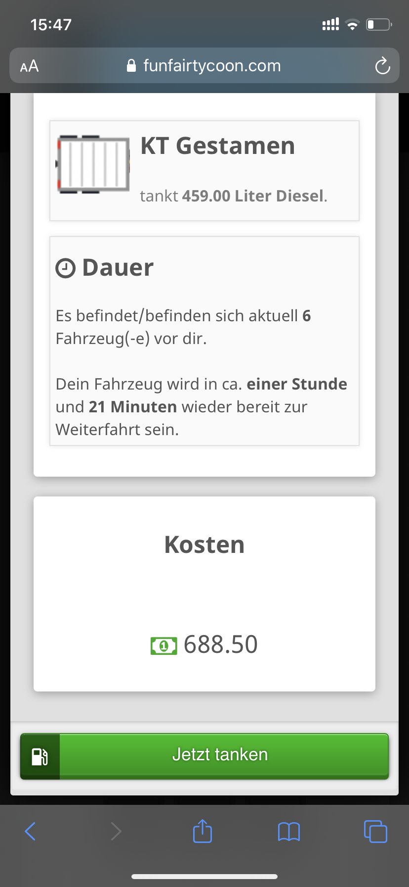Ich weiß nicht, aber Ich halte es für einen Fehler. Ich habe nun 10 Autos zum tanken geschickt in Erlangen. Bei jedem stand, dass sich immer NUR 1 Auto vor mir befindet. Sollten es nicht bei jedem Auto einer mehr sein?