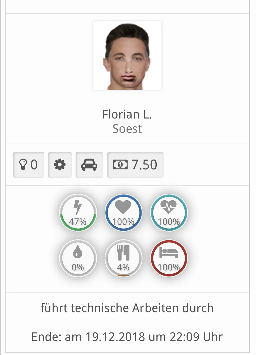 Für die Inspektion benötigst du einen Techniker. Diese Mitarbeiter erkennst du an dem Zahnrad Symbol bei ihren Fähigkeiten: