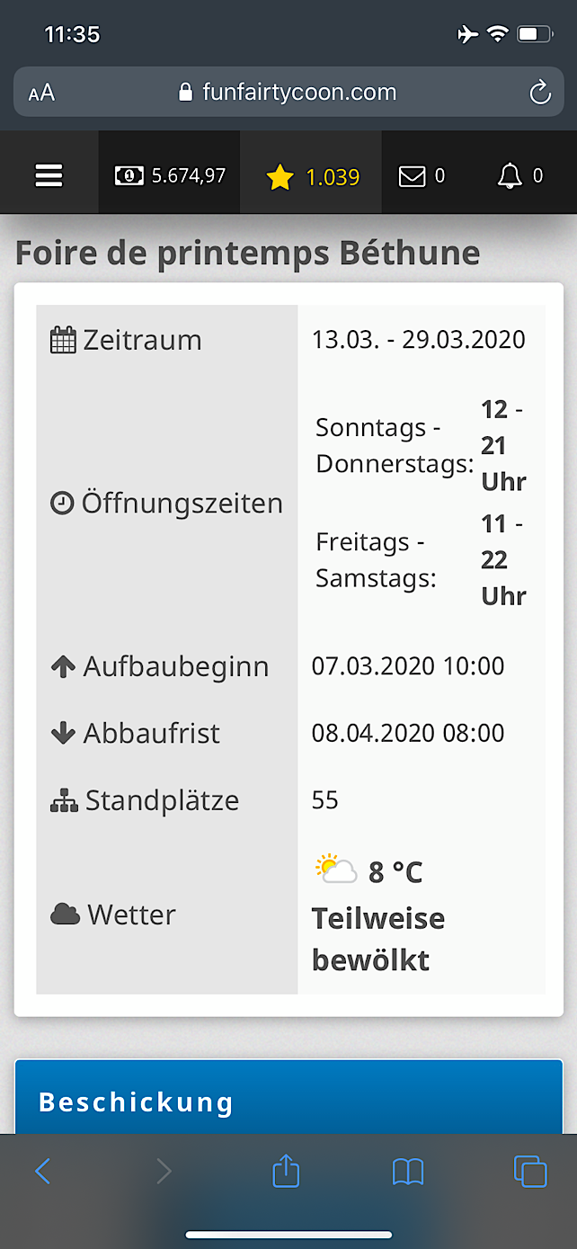 Ich habe bemerkt, dass man bei dem Festinformationen im Mobilen Browser (nutze Chrome, hab aber auch andere probiert) diese Tabelle nicht vollständig sehen kann und diese Tabelle kann ich nicht scrollen, um sie ganz zu sehen. Ich kann nur das sehen: