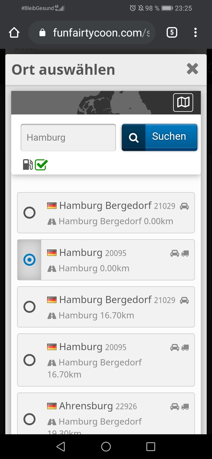 z.B. wie im Bild zusehen Hamburg Bergedorf 0,00Km und Hamburg 0,00Km jedes mal wenn ich Hamburg Bergedorf ausgewählt habe ging es schief als ich Hamburg direkt ausgewählt habe ging es gut. Obwohl es die selbe entfernung hatte klappte es nicht.