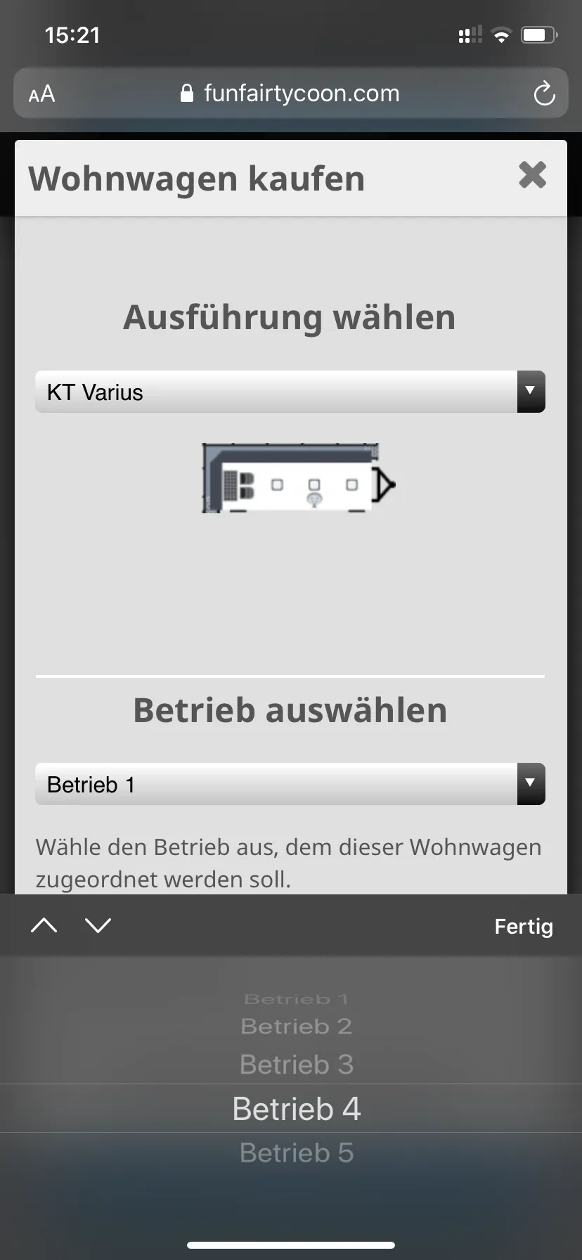 Ich habe nun festgestellt das man erst in Betrieb 2 gehen muss und dann den Wohnwagen kaufen sollte.