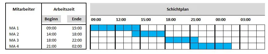 Und warum hast du eigentlich überlappende Schichten? Das kostet dich ja doppeltes Geld :rolleyes: