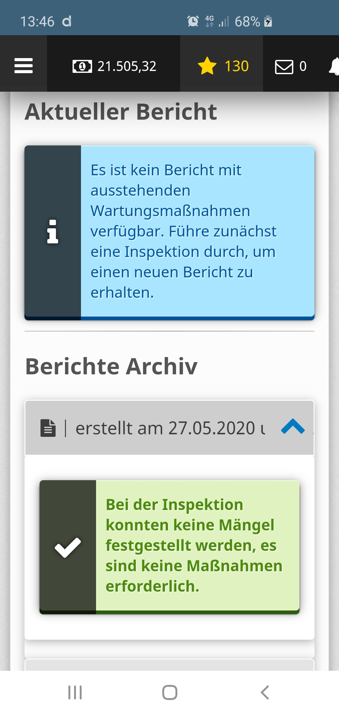 Also ich habe heute morgen eine Inspektion durchgeführt natürlich ohne Befund also habe ich das Spiel laufen lassen, jetzt bin ich nochmal online gegangen mein Geschäft ist seit ca. 50min in Betrieb und hat direkt 1% Verschleiß ist das normal?