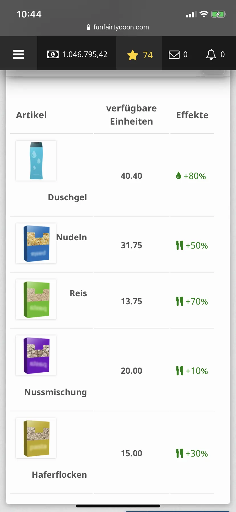 Anzeige im Inventar