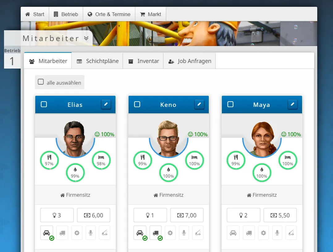 - [angepasst] Die Motivationsanzeige wurde optisch angepasst. Außerdem wurden alle Stellen im Spiel, in denen Mitarbeiterbilder angezeigt wurden, ebenfalls überarbeitet.
