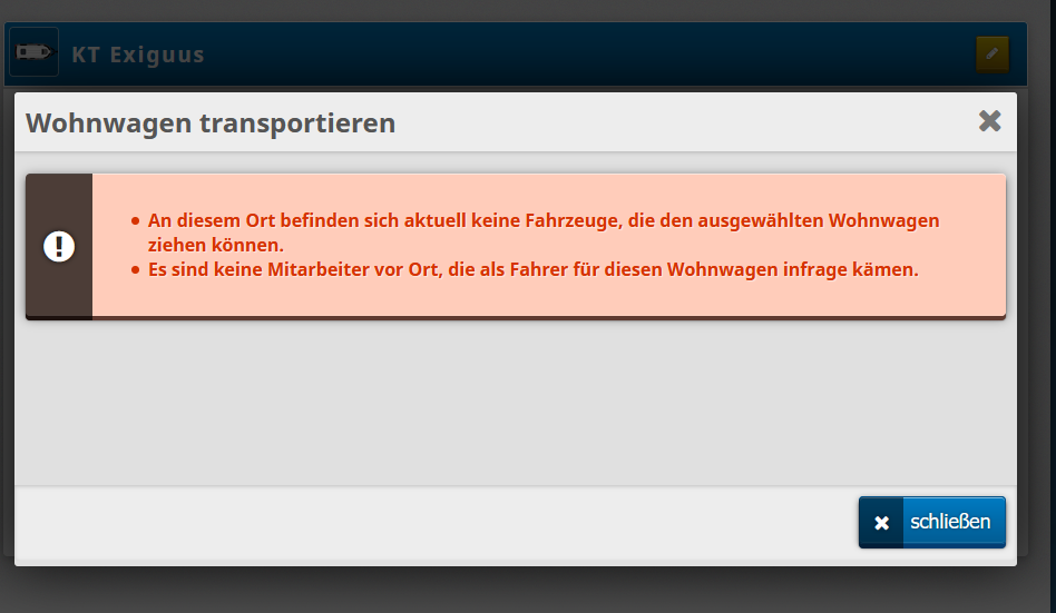 • So jetz habe ich probiert denn whonwagen aufzustellen also aufbauen und dann kamm diese meldung im anhang da sehe ich keinen sinn darin tut mir leid also was jetzt neue mitarbeiter einstellen ääääähhhhmmmm für was nur weil ein system nicht richtig funktioniert nein so nicht habe mit meinem 2 betrieb schon solche problemme gehabt es ist eindeutig zu wenig informationen was wie was funktioniert ich hoffe es wird in zukunft funktionieren MFG Kore1