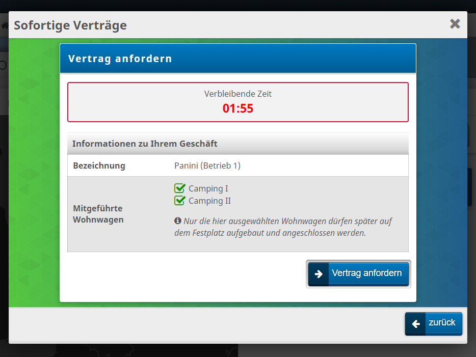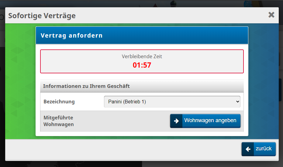 - Es gibt ein Reservierungssystem, falls mehrere Spieler zur gleichen Zeit einen Vertrag anfordern möchten. Ein Countdown zeigt an, wie lange die Reservierung noch aufrecht erhalten wird.