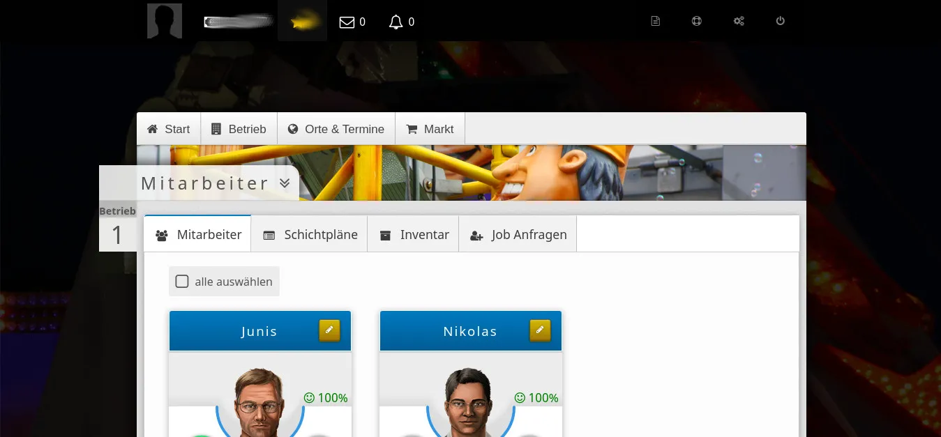 Wieso haben wir auf der Spielseite nicht auch so einen schönen Hintergrund? Das einzige was auf Volksfest hindeutet, ist der kleine Foto im Banner über „Aktuelle Veranstaltungen“ Oder die Grafik über „Quest“.