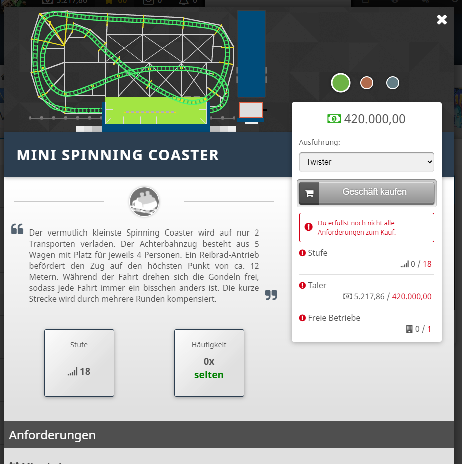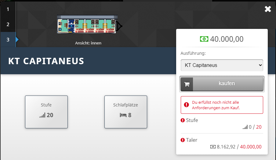 - [neu] Kauf-Voraussetzungen: Wenn man die Detailansicht über den Markt öffnet und die Voraussetzungen zum Kauf noch nicht erfüllt, werden diese ausführlich und klar verständlich aufgelistet