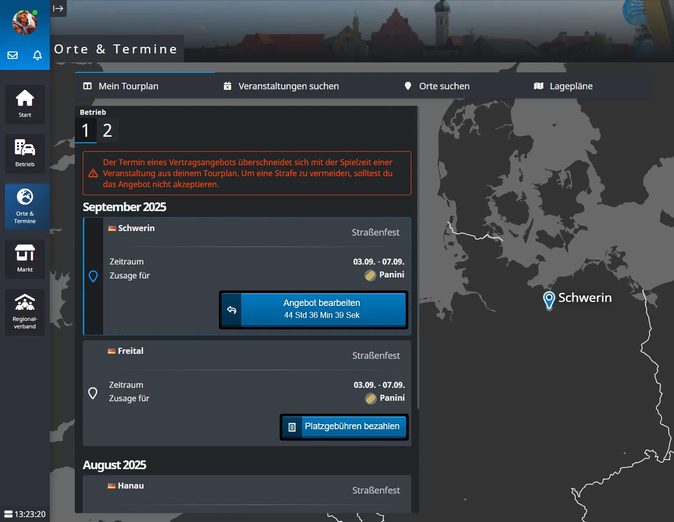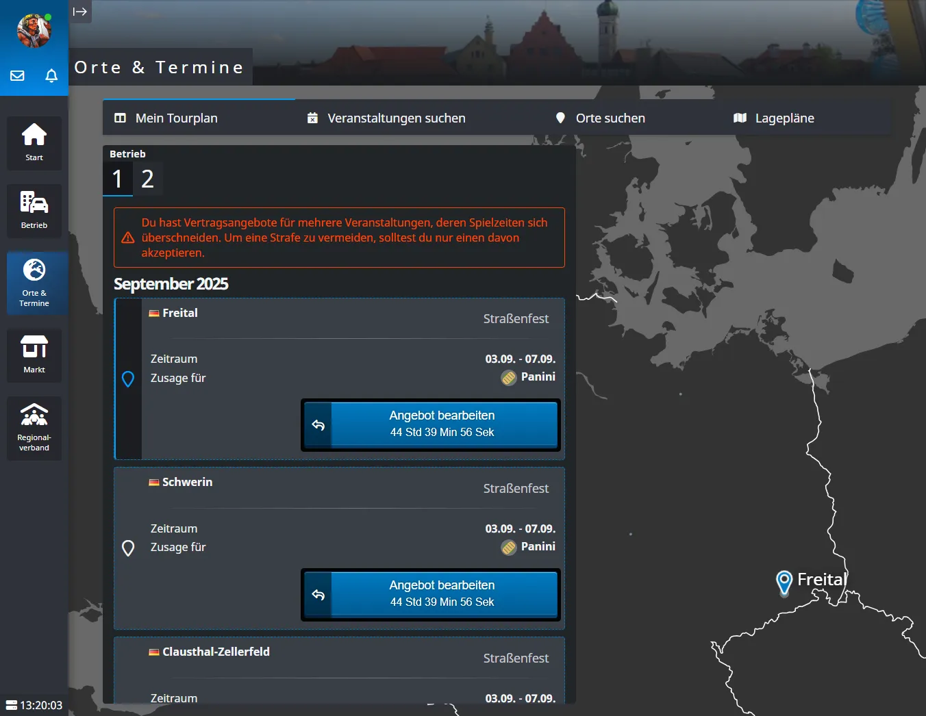 Die Kategorien mit weniger als 1 Platz wurden aufgerundet auf 1. Damit insgesamt die Anzahl der Standplätze noch stimmt, wurden zum Ausgleich Reihengeschäfte gestrichen. Das hat soweit gut funktioniert, bis wir irgendwann ein Problem hatten, dass auf kleinen Veranstaltungen plötzlich keine Reihengeschäfte mehr zugelassen wurden, weil so viele Ausgleichsplätze benötigt wurden. Deshalb wurde die Berechnung geändert.