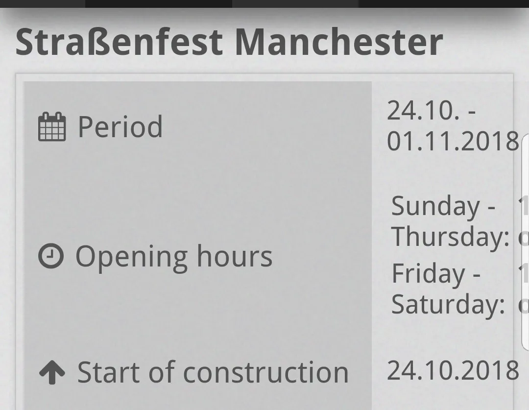 Die Details einer Veranstaltung sind rechts abgeschnitten. Kein seitwärts scrollen möglich.