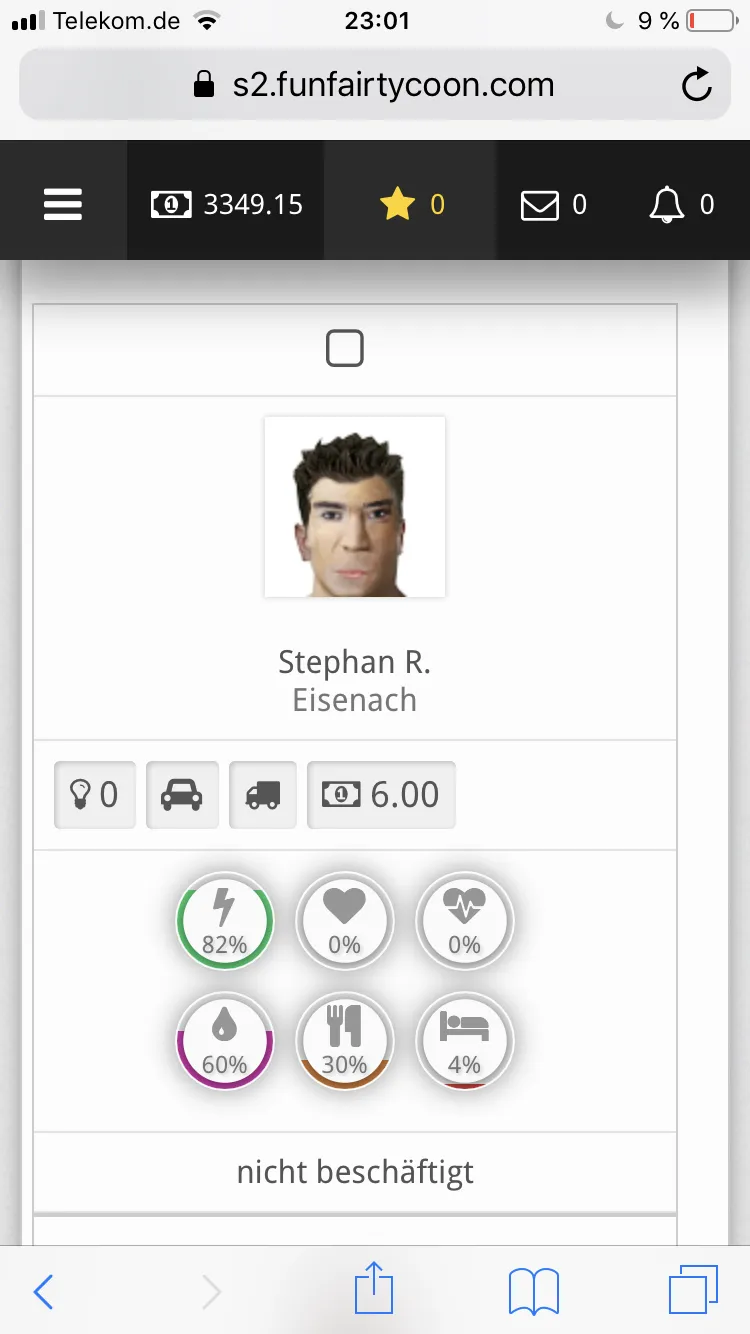 So eine Aufzählung wie in Kirmes-Tycoon wäre super. Den einer meiner Mitarbeiter hat nun eine Zuteilung zum Wohnwagen am Firmensitz aber nur welcher ![]()