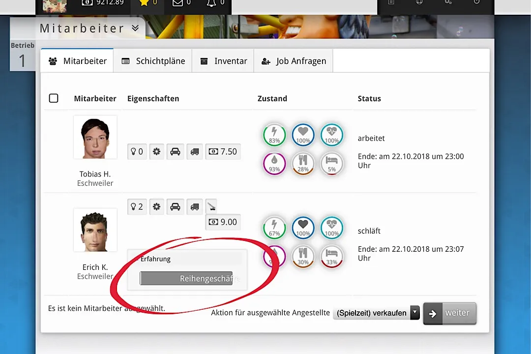 Ausgeloggt, eingeloggt Zack Mitarbeiter hat 30% Müdigkeit ![]()