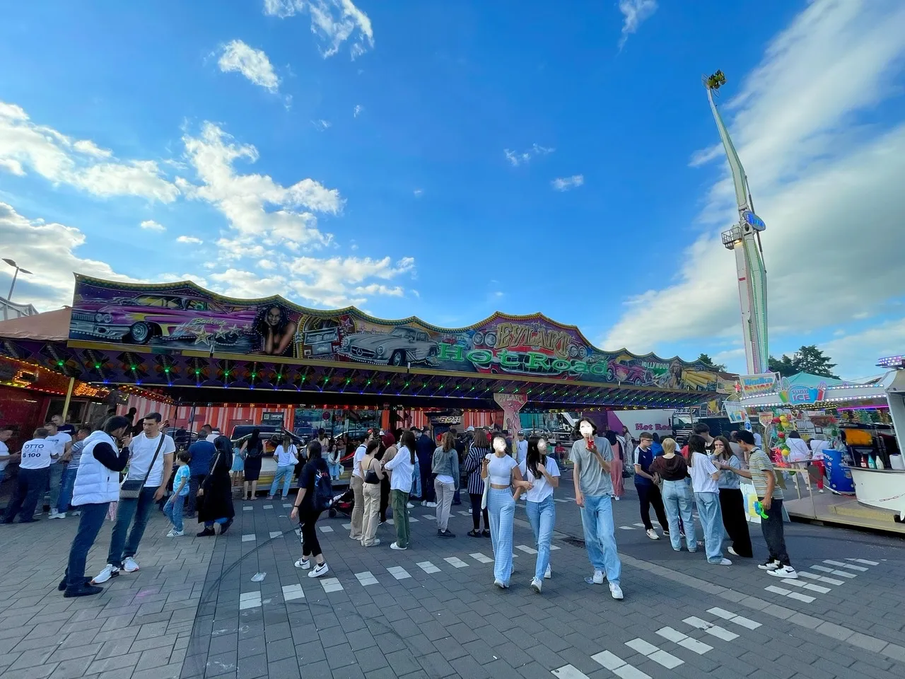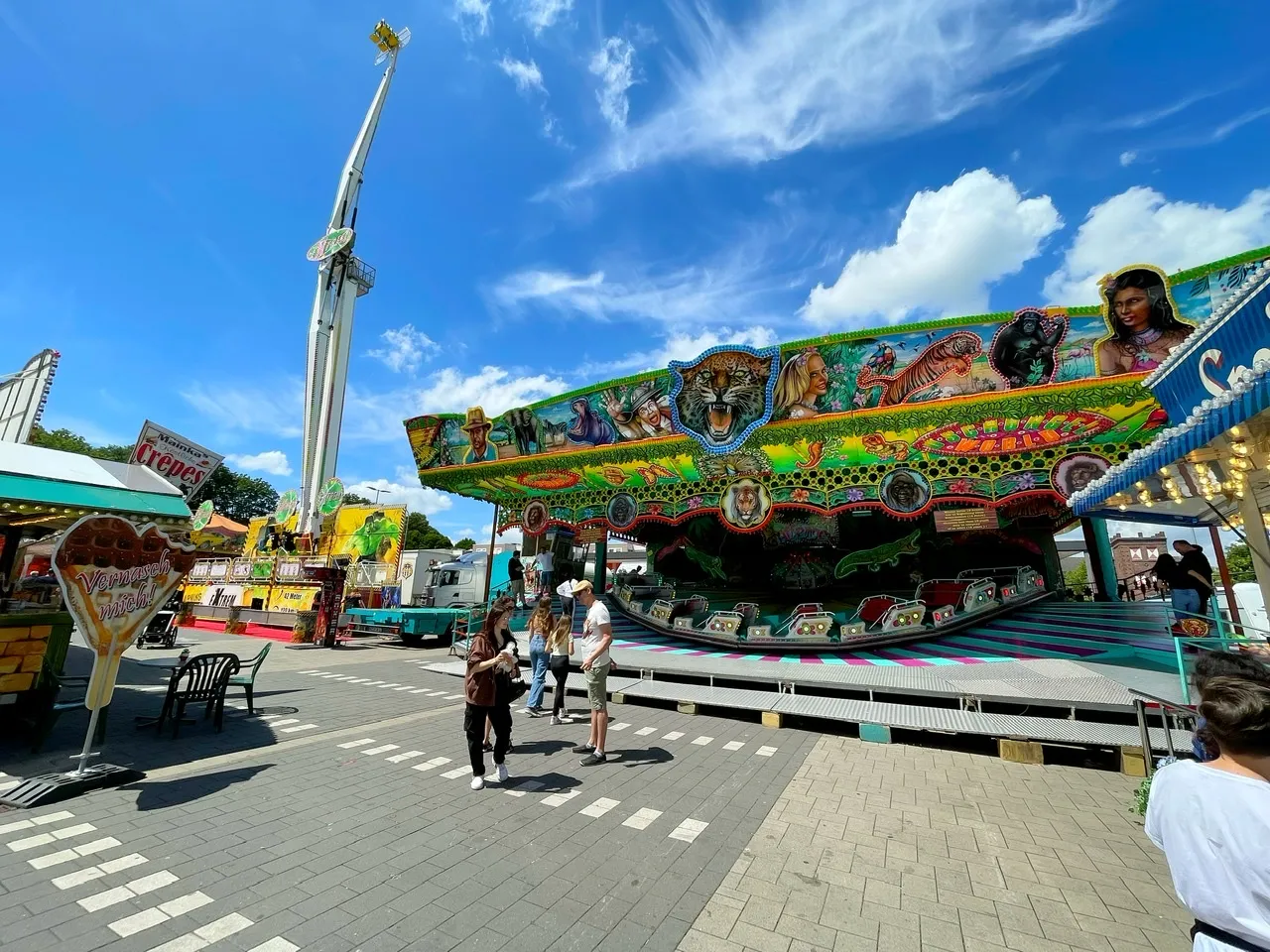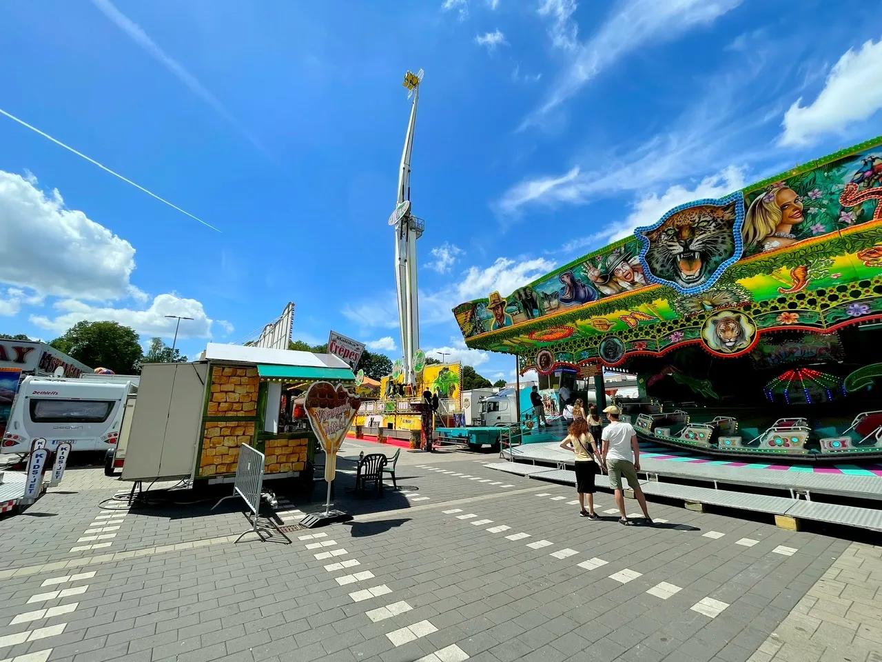Kirmes in 52499 Baesweiler. Am Feuerwehrturm auf dem Edeka Parkplatz bzw. Vorplatz.