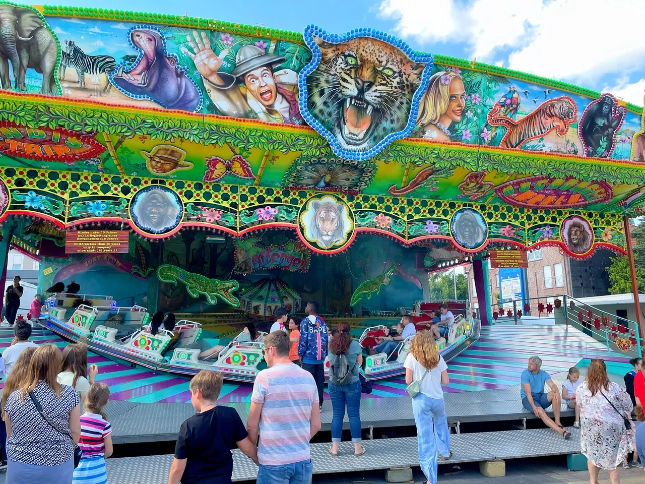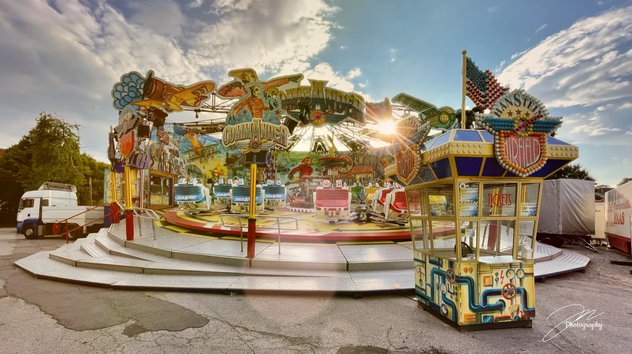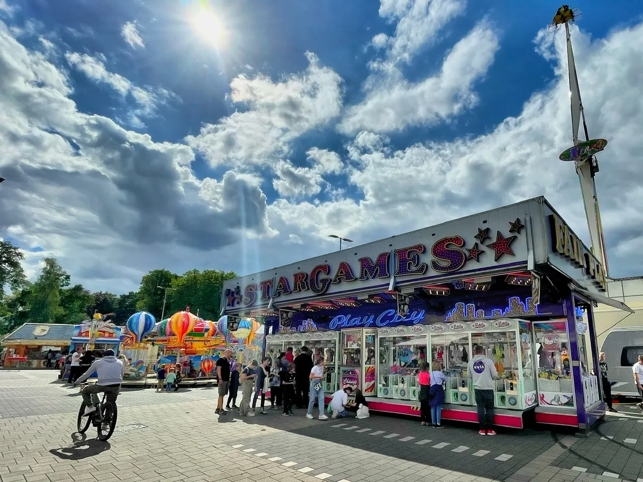Kirmes in 52499 Baesweiler. Am Feuerwehrturm auf dem Edeka Parkplatz bzw. Vorplatz.
