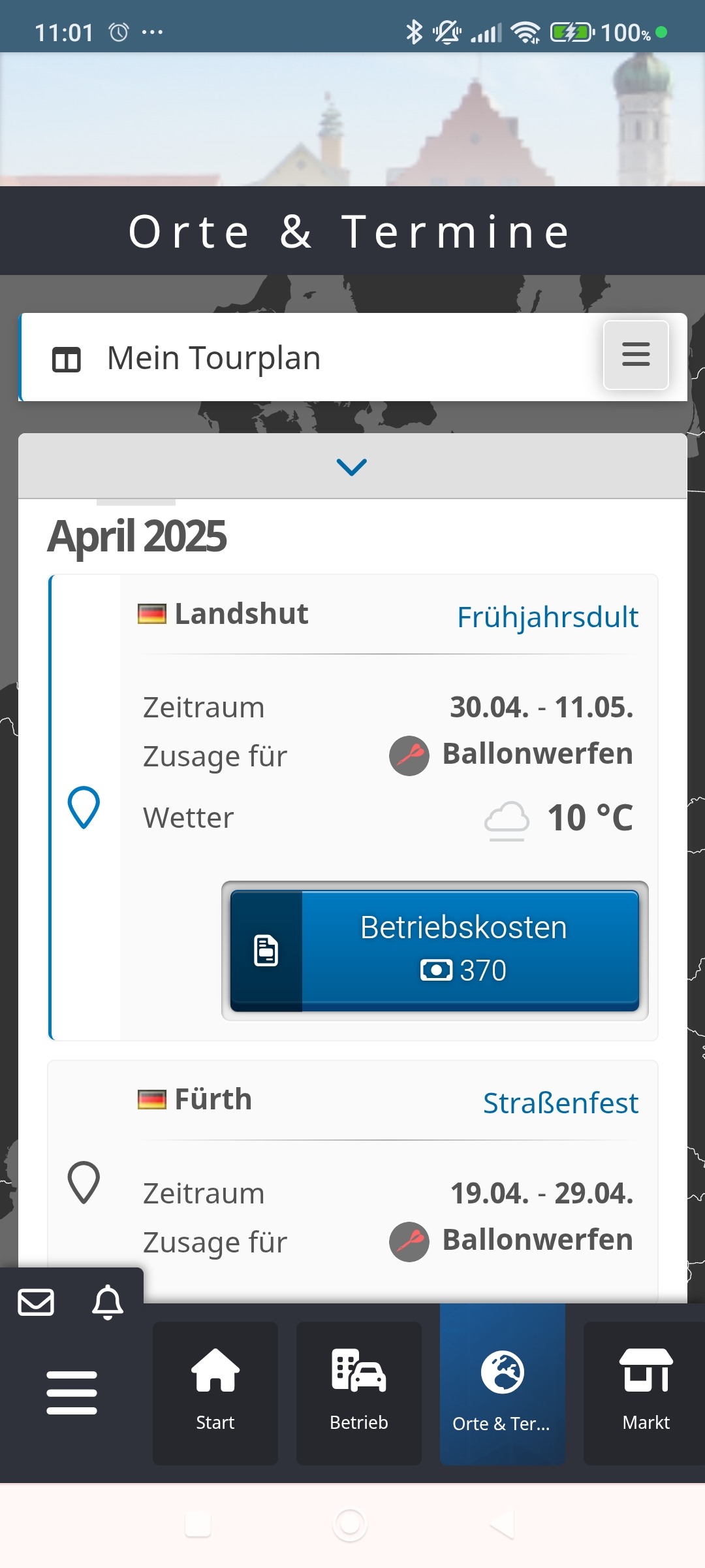 Ich habe eine Zusage für mehrere Feste bekommen kann dieses aber nicht annehmen da diese in meinem Tourplan nicht angezeigt werden. der richtige Betrieb ist aisgewählt. Das blöde ist halt das ich bis morgen Rückmeldung geben muss ich dies aber nicht kann. Was mich auch wundert ist das abgelaufene Veranstaltungen trotzdem noch in meinem Tourplan angezeigt wird. Vielleicht hat jemand ne Idee. Danke schonmal