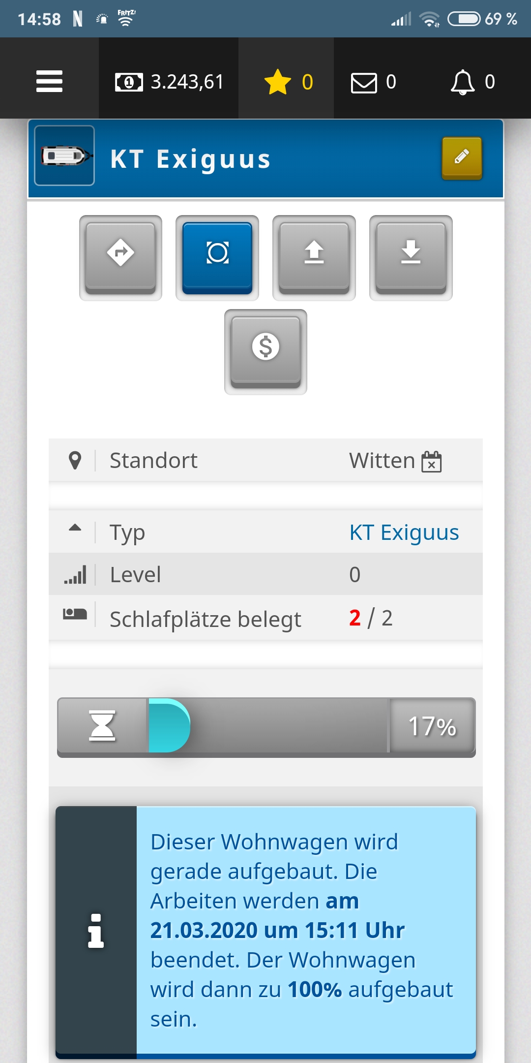 Beim Aufbau vom Wohnwagen ist mir gerade aufgefallen, dass die Fortschrittsanzeige bei 7% startet. Ich denke mal das ist so nicht ganz richtig
