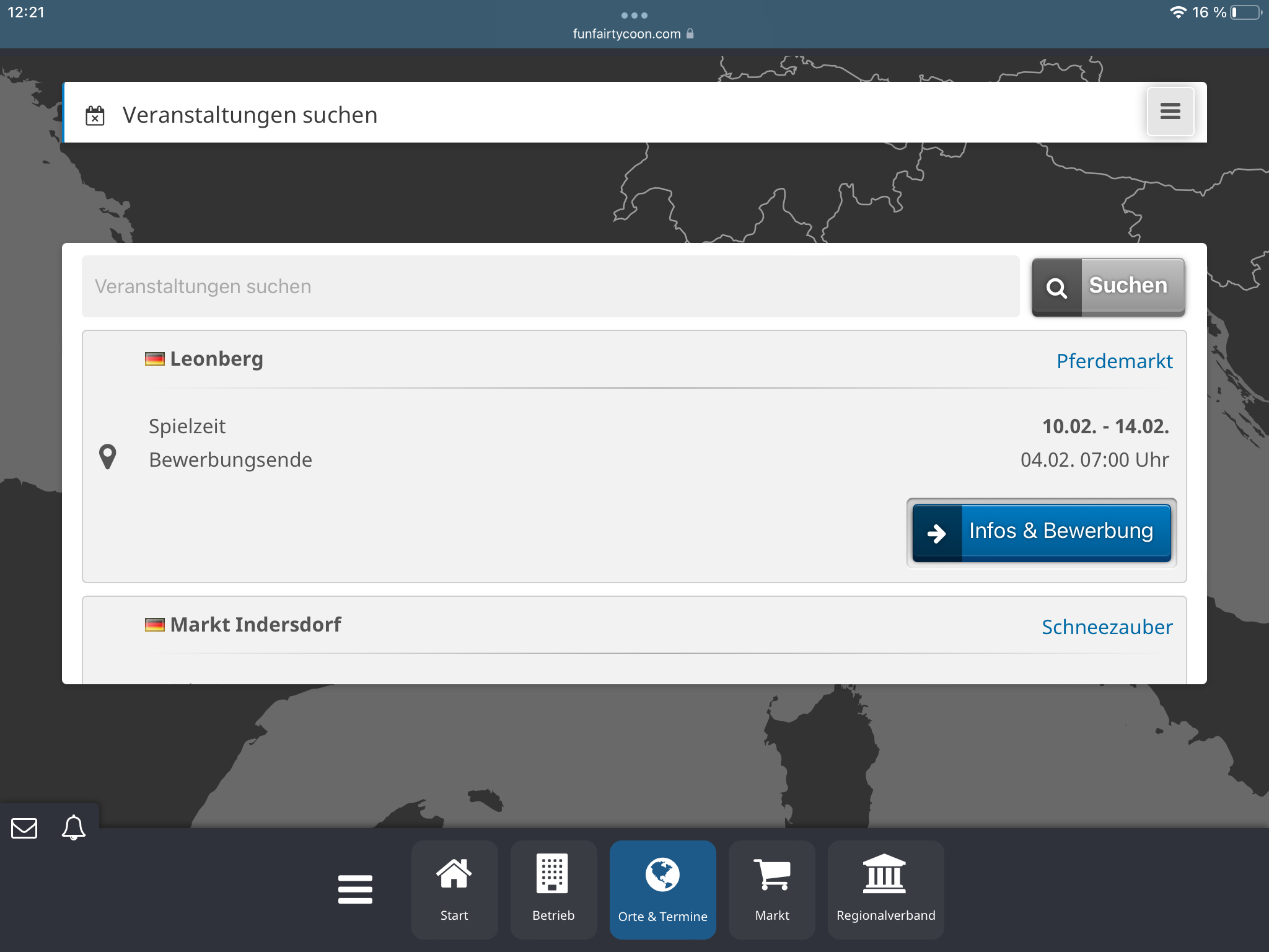 bei mir ist es so wenn ich auf orte und termine drücke muss ich die leiste veranstaltung suchen sehr dunkel das heisst es rutscht ins dunkle ansonsten schlage ich mich irgendwie durch