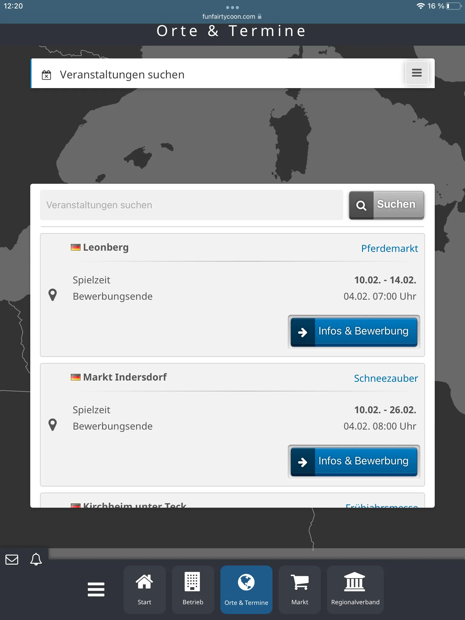 bei mir ist es so wenn ich auf orte und termine drücke muss ich die leiste veranstaltung suchen sehr dunkel das heisst es rutscht ins dunkle ansonsten schlage ich mich irgendwie durch